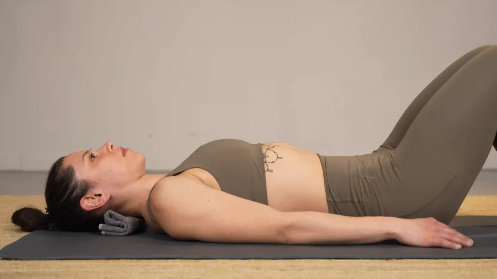 Dehnübung zur Lösung von Spannung im Mundbodenbereich.