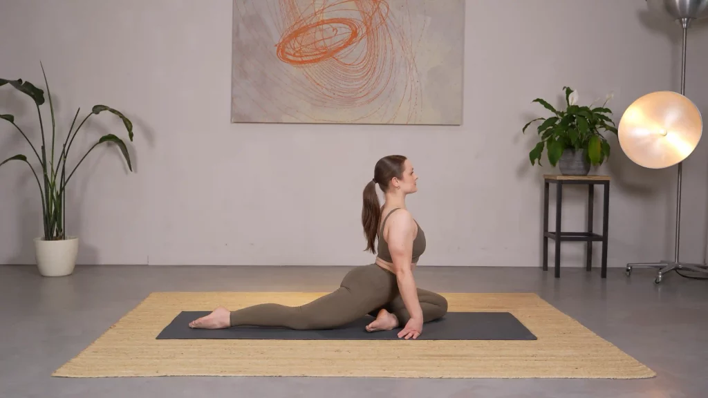 Kombiniert Hüftbeuger- und Gesäßdehnung – für mehr Bewegungsfreiheit im Becken.